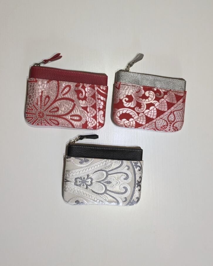 華やかな赤のレース模様が印象的な西陣織のポーチが新登場です!美しいデザインは日常使いにぴったりながら、特別なシーンでもお使いいただける優雅さがあります。さらに、グローブレザー(北米産 牛革)のシルバーと組み合わせられたこのポーチは、上質な手触りを感じながら、使うたびに心が豊かになる特別な体験をお楽しみいただけます。