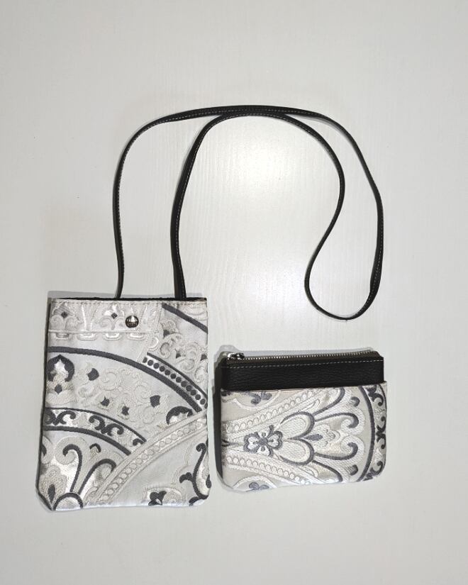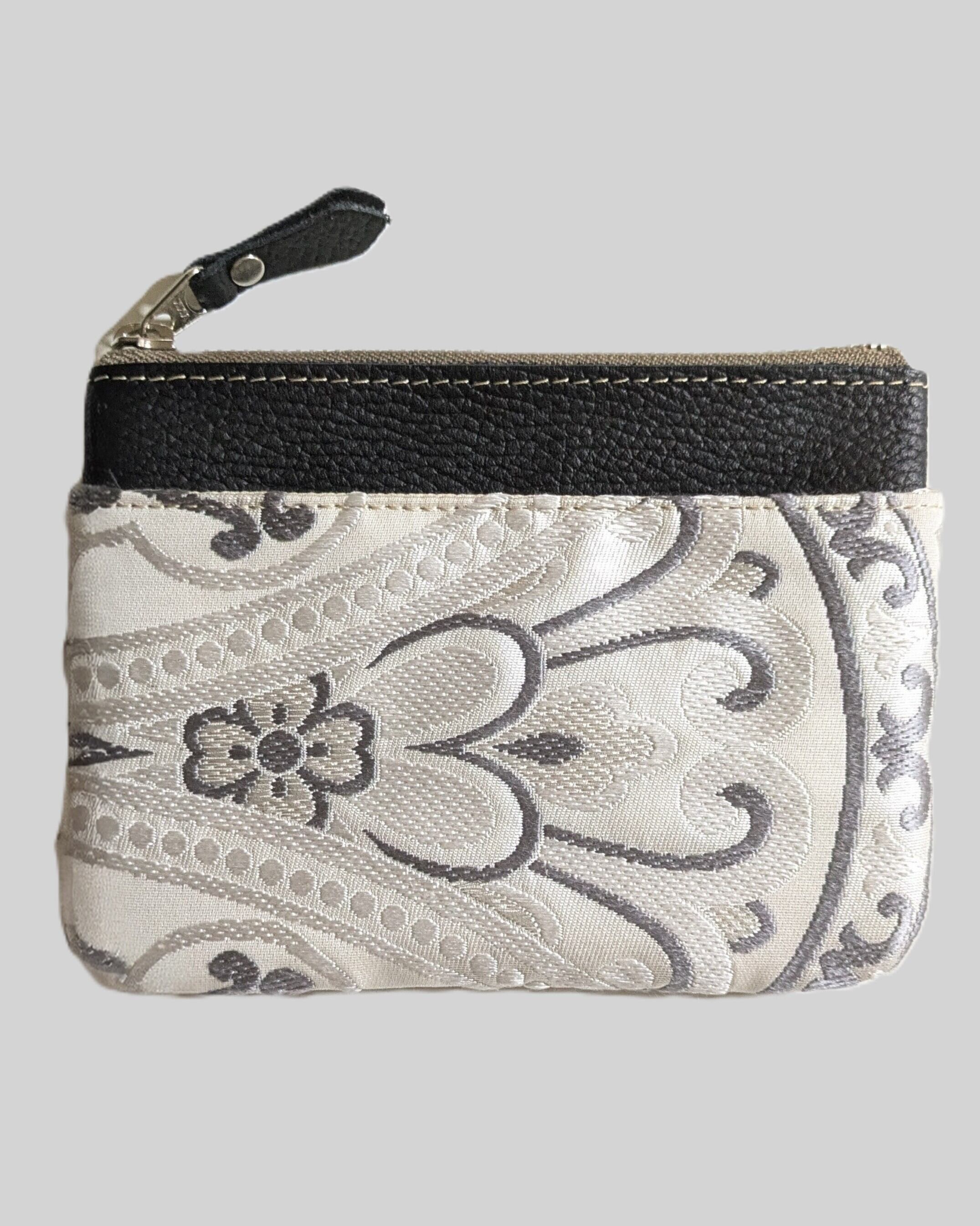 美しい白地にシルバー、グレーの華文が目を引く、西陣織のポーチが新たに登場です!優雅なデザインは、日常使いにも特別なシーンにも適しています。さらに、グローブレザー(北米産 牛革)ブラックとの組み合わせにより、上質な手触りとともに、使うたびに特別な体験をお楽しみいただけます。