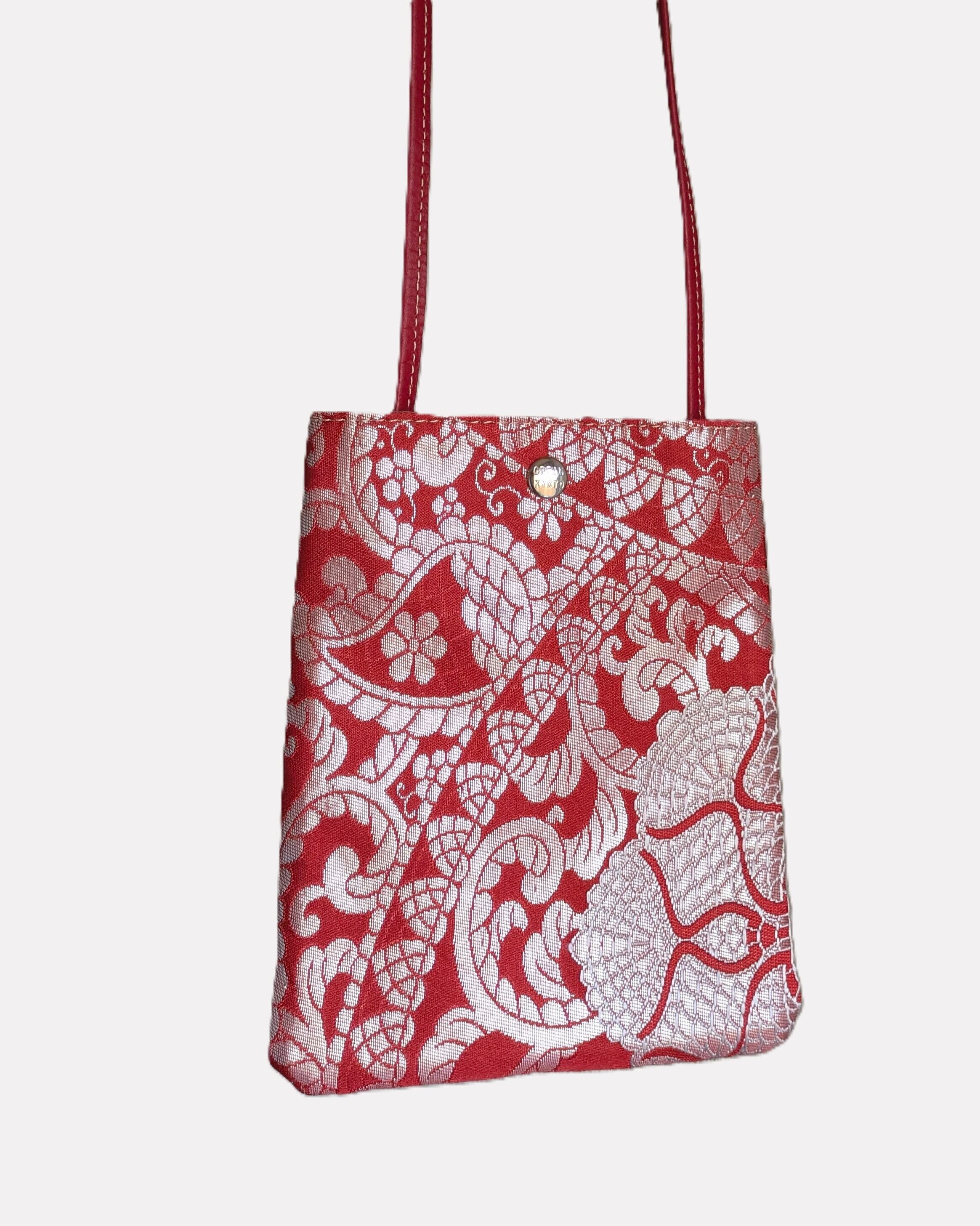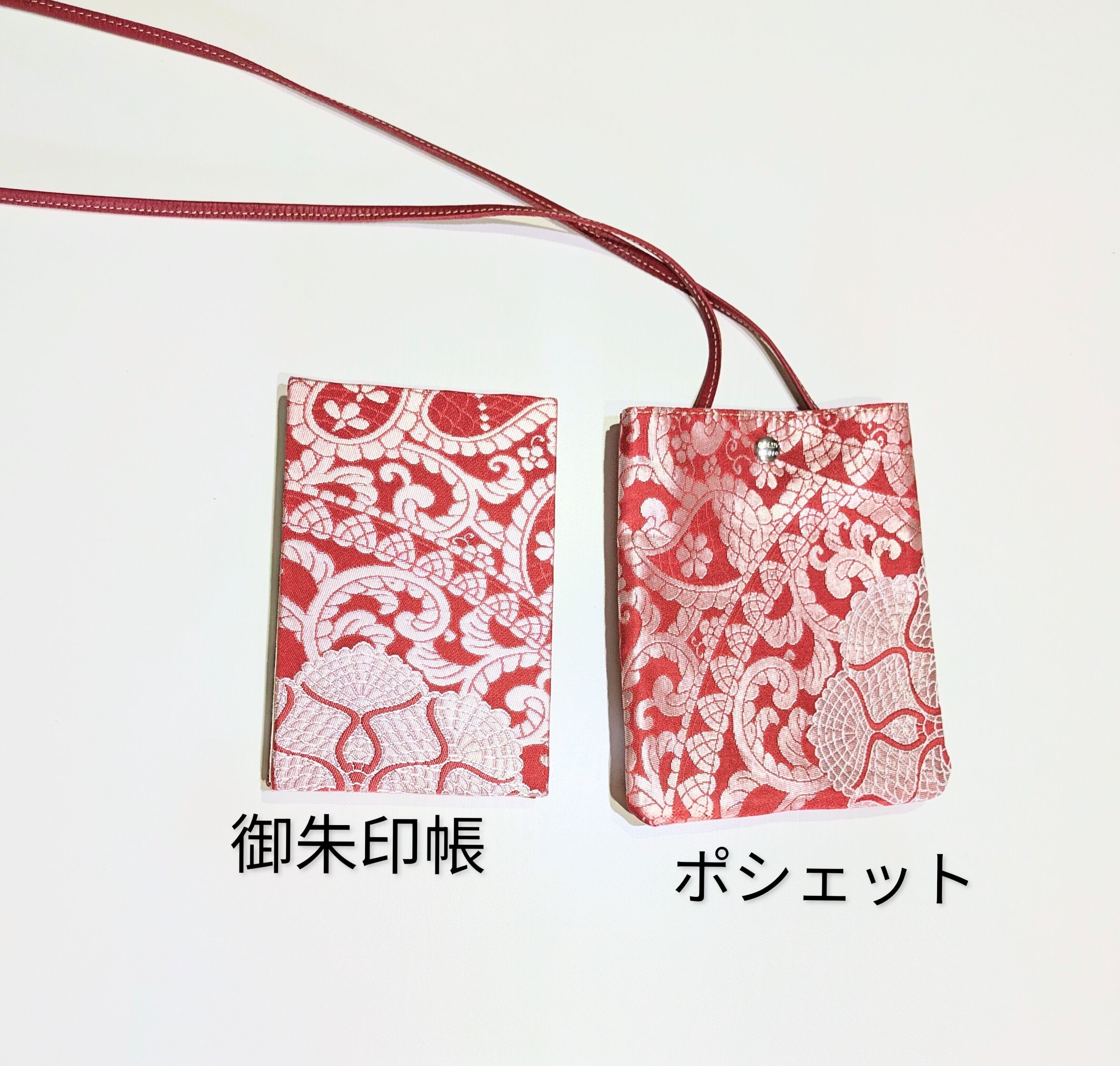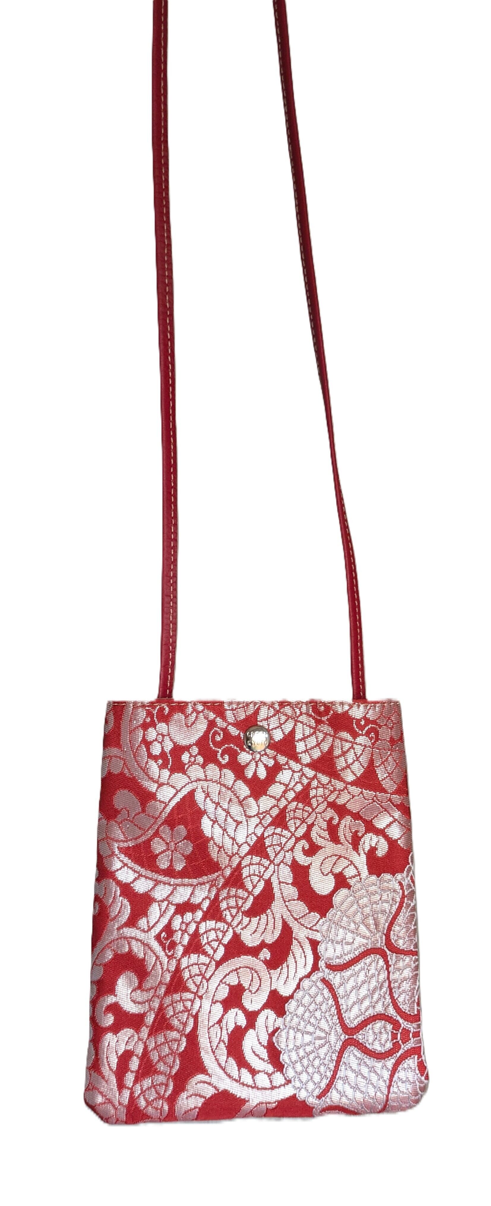 華やかな赤色にレース模様が印象的な、西陣織を使用したミニポシェットが登場しました!