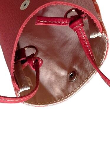 京都西陣織<レース華文>『赤』× グローブレザー『赤』 ミニポシェット