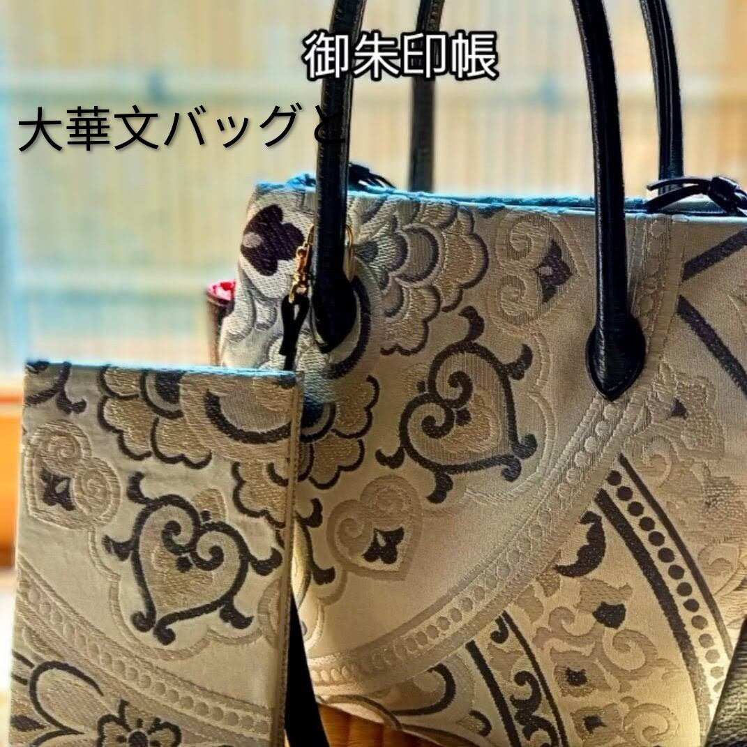 当店オリジナルバッグ大華文シリーズから御朱印帳が登場しました。華やかな大華文様が際立つ御朱印帳は、美しい色合いとデザインが、貴方の特別な瞬間を一層引き立ててくれます。この御朱印帳は、特別感あふれる一冊となっています。伝統的な西陣織の技術を取り入れたデザインは、特別な思い出だけでなく、日常使いにもぴったりのアイテムです。